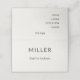 Este cartão de lugar e menu de casamento arquitetônico apresenta um layout minimalista refinado com um cabeçalho de sobrenome em negrito e tipografia estruturada.