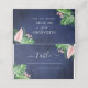 Folhas de Palma Verdes Tropicais e Flores Rosa Esmagadas Aquarela com Forma Geométrica de Folha de Ouro Faux Rosa e Cartões de Primavera Azul Marinho ou de Casamento de Verão - inclui uma bela e elegante tipografia de escrita com flores botânicas tropicais modernas e verde para a celebração especial do Dia de Casamento.