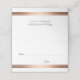 Cartões simples e elegantes para convidados de casamento, com dois embelezamentos de listras de cobre no fundo. Os nomes da noiva e do noivo são apresentados na parte de trás do cartão de lugar, juntamente com a data do casamento.