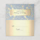 Folha de ouro moderna, elegante, falsa e cartão de lugar azul empoeirado com renda floral de luxo.