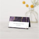 Cartões de Mesa de Casamento de Agato Roxos e Dourados. Folha de ouro falso confete e pinceladas de pincel. A fonte do script é realçada com a fonte de nome de serif de leitura fácil. Fácil de ajustar para as suas necessidades de casamento. Cartões de nome de mesa personalizados.