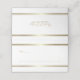 Um cartão elegante de casamento branco e ouro moderno, com os nomes da noiva e do noivo nas costas, juntamente com a data do casamento.