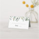 Este cartão de casamento de folhagem de eucalipto é perfeito para um casamento moderno. A design apresenta um eucalipto elegante desenhado à mão por uma aquarela botânica, inspiradora beleza natural. Personalize a parte de trás do cartão de lugar com os nomes da noiva e do noivo e a data.
