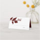 Placa de lugar do casamento outono ou design de placa de escolta apresenta uma parte superior das folhas de burgundy. Espaço fornecido para nome de convidado e número da tabela. Cartões invertem para revelar o nome da noiva e do noivo e a data do casamento na tipografia serif tradicional. O dentro apresenta uma cor sólida correspondente. Uma escolha luxuosa para a queda rústica e casamentos no outono. Projetado para combinar com a coleção de artigos de casamento de luxo de uma Belle. Para mais informações, visite www.zazzle.com/dotellabelle