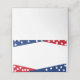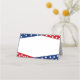 Este cartão de lugar dobrado é mostrado em branco com um impressão de quatro estrelas vermelho, branco, azul de julho. Personalize este item ou comprar como está. Imagem do stock freepik.com