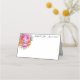 Este cartão de lugar de nome dobrado é mostrado em branco básico com um adorável sotaque floral de pénia cor rosa e laranja e tem exemplos de nomes personalizados. Personalize este item e altere os nomes e a data para o que você precisa com este modelo.