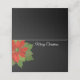 Este cartão de lugar dobrado é mostrado em preto e vermelho com uma flor de poinsettia vermelha festiva de Natal. Personalize este item ou comprar como está.