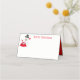 Este cartão de lugar dobrado é mostrado em branco básico com um interior vermelho com um impressão de Snowman de Natal festivo. Personalize este item ou comprar como está.