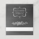 Placa de lugar dobrada para cinza de quadro-negro com gráficos brancos de um rosa, na frente e uma área enquadrada decorativa, no verso. Uma banda branca, na frente da placa, está pronta para você escrever manualmente o nome de cada convidado. A parte traseira do cartão tem um texto branco personalizado pronto para ser alterado para ler o que você deseja.