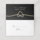 Guie seus convidados com sofisticação usando este cartão elegante de ouro e de casamento preto. Com um coração romântico de corda dourada e fundo negro minimalista, esta carta dobrada adiciona um toque na moda, moderno às suas mesas recepções de casamento. Personalize-o com seus nomes, data de casamento e detalhes de convidado para uma experiência de evento elegante e perfeita.