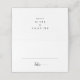 Este cartão moderno de casamento é perfeito para um casamento rústico. O design simples e elegante apresenta a tipografia de scripts clássicos e ricos em preto e branco. Personalize a parte de trás do cartão de lugar com os nomes da noiva e do noivo e a data.