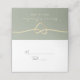 Um cartão de casamento verde moderno com um coração de corda de ouro minimalista e um roteiro elegante. Perfeito para atribuir assentos de hóspedes na sua recepção enquanto adiciona um toque na moda e coeso à decoração da mesa. Personalize facilmente com nomes e números de tabela para seu dia especial.
