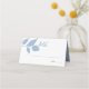 Cartão de Casamento ou design de Cartão Escort apresenta uma parte superior de folhas azuis empoeiradas. Espaço fornecido para nome de convidado e número da tabela. Cartões invertem para revelar o nome da noiva e do noivo e a data do casamento na tipografia serif tradicional. O dentro apresenta uma cor sólida correspondente. Uma escolha luxuosa para casamentos modernos e minimalistas. Projetado para combinar com a coleção de artigos de casamento de luxo de uma Belle. Para mais informações, visite www.zazzle.com/dotellabelle