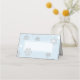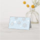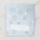 Placa de lugar dobrada com tema de casamento no inverno feita em azul-claro-claro com uma área de texto branca cercada por flocos de neve brancos. Personalize manualmente cada cartão para sua recepção de casamento.