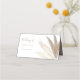 Cartões de mesa de casamento autóctones elegantes, com um fundo branco clássico, capim bonito em creme e castanho com galhos dourados, com espaço para nome e número de mesa.