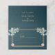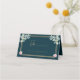 Guie seus hóspedes para seus assentos com estas elegantes placas de lugar dobradas. Adorados com delicadas folhas de eucalipto e uma encantadora flor rosa, essas cartas são funcionais e decorativas. A parte frontal possui espaço para escrever o número da tabela e inserir manualmente o nome do convidado, enquanto a parte traseira pode ser personalizada com os nomes da noiva e do noivo e a data do evento. A inscrição dourada e o quadro duplo adicionam um toque de sofisticação, enquanto o fundo verde escuro quente com pistas de azul estabelece um tom elegante para a celebração do casamento.