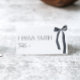 Estes cartões de lugar são uma bela decoração para o seu chá de panela temático "Ela está se casando" com laços pretos góticos.