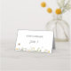 Cartão de lugar temático de flor silvestre para chá de noiva ou qualquer evento, apresentando principalmente flores silvestres amarelas, uma abelha e folhagens na base do cartão.