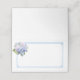 Este cartão de nome dobrado é mostrado em branco básico com um lindo buquê floral de hortênsias e uma moldura de cor azul poeirenta clássica.