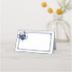 Este cartão de nome dobrado é mostrado em branco básico com um lindo spray floral em cores de azul profundo.