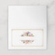Este cartão de nome dobrado é mostrado em branco básico com uma linda impressão de buquê floral.