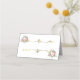 Este cartão de nome dobrado é mostrado em branco básico com uma impressão de caixa com floreios dourados elegantes e uma impressão de rosas vintage em cada canto.
