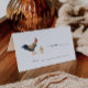 Cartão de lugar para o seu casamento com a ilustração das galinhas com aquarelas.