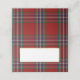 Placa de lugar dobrada por xadrez na moda feita no padrão clássico de xadrez vermelha Clan MacFarlane tartan. Uma área de texto branco dourada, na frente, pode ser personalizada manualmente para cada convidado na sua recepção.