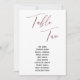 Esta simples e elegante design apresenta a "Mesa Dois" reproduzida numa letra moderna de escrita manual e embelezada com um efeito rosa-metálico falso-dourado. A fonte dos nomes pode ser alterada se você desejar. Assim como a cor de fundo. Os detalhes aparecerão na frente e no verso. 151 //