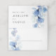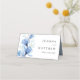 Um cartão de lugar de casamento floral transparente azul poeirento elegante, personalizado com o nome da noiva e do noivo e data especial. Projetado por Thisisnotme©