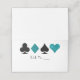 Perfeito para um casamento glamouroso e reluzente no casino de Las Vegas, este cartão de lugar dobrado em branco apresenta uma falha de brilho com fatos de cartas pretas, um espaço pré-impresso para escrever em números de mesas e um espaço branco vazio para escrever em seus nomes de convidados. O seu fornecedor precisa saber a escolha de refeição de cada convidado? Edite este design para adicionar um backer colorido exclusivo para cada tipo de refeição ou use um adesivo para indicar quem recebe qual tipo de refeição. Estes cartões são vendidos em pacotes de 25, por isso não se esqueça de pedir o suficiente para cada lugar!