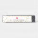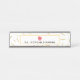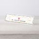 Uma placa de identificação da mesa para os professores que caracterizam um amarelo escreve o design do teste padrão do fundo. Personalize o nome sob a ilustração da maçã do rosa do eliminador.