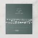 Esta corda rústica ilumina o cartão verde do casamento é perfeito para um casamento clássico. A design apresenta belas luzes de cordas pintadas manualmente em um fundo verde. Personalize a parte de trás do cartão de lugar com os nomes da noiva e do noivo e a data.
