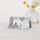 Estes cartões de casamento apresentam um abstrato de folhas design em azul-ardósia, chocolate escuro marrom e esticado com espaços reservados para o número da mesa e as iniciais da noiva e do nome do noivo como sotaques.