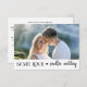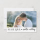 Diga a sua família e amigos que, devido às circunstâncias atuais, você está redimensionando seu casamento para uma cerimônia menor e íntima, com este cartão com fotos moderno e elegante. Adicione uma de suas fotos horizontais favoritas à frente da carta, com a frase "Mesmo amor, casamento menor" em fontes pretas modernas decoradas com um pequeno coração negro. Na parte traseira do cartão, você pode personalizar sua mensagem com mais detalhes e seu endereço no site do casamento para mais atualizações.