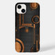 metal negro com círculos de madeira