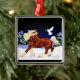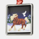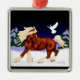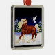 Cavalo de esboço belga da castanha magnífica com uma juba e uma cauda de fluxo que funcionam através da neve. Gira como uma pomba branca se aproxima, brilhante contra o céu escuro. Ilustrado por T.A.Paxton