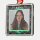 Um quadro verde realçado por um plano de fundo com uma cor damasco sutil é a peça central deste adorno de fotos do keepsasakr elegante. Carregue sua própria foto e personalize o ano e o nome. Este elegante design faz um presente de excelente para qualquer ocasião!