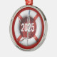 Fotografia de um anel de vida vermelho e branco com o texto personalizável, "Guarda de vida" impresso no centro.