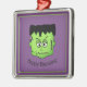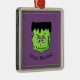Este ornamento de feriado é mostrado em forma quadrada com um impressão de arte Halloween Frankenstein. Personalizar este item ou comprar como está. imagem de estoque
