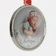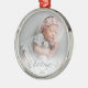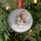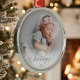 Ornamento de Script de Natal prata com sua foto e uma Tipografia de Script de Natal prata decorativa e seu ano personalizável. Mostre seu bebê recém-nascido, seu animal de estimação, foto de família ou outro. Um Enfeites de natal versátil, clássico e simples para a decoração do seu festival e um guardião por anos. A camada de fotos em gradiente branco sob o texto facilita a leitura, se você não quiser, ela é facilmente desligada da ferramenta design. Uma escolha perfeita se seu tema de cor usar prata.