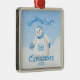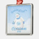 Um ornamento da lembrança do divertimento para seu goddaughter em seu primeiro Natal caracteriza um boneco de neve adorável com um grande sorriso grande, um nariz da cenoura e um chapéu distorcido e umas luvas do azul. o boneco de neve está sentando-se em um campo nevado com entre uma agitação de flocos bonito da neve. O ano pode ser mudado usando o modelo fornecido.