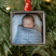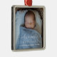 O Ornamento Metálico de 1rua de Natal do Bebê Bonito. A primeira do bebê é em uma fonte caprichosa, com as palavras presas junto com uma pequena fita. Todas as cores do texto podem ser editadas para complementar sua foto. Personalize com o nome do ano e do bebê. É um ornamento de manutenção que certamente será tesouro ano após ano! © Kimbellish, LLC