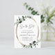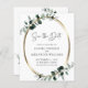 Orçamento Casamento Metálico Dourado Eucalyptus Salve a Data Convite... Nossa luxo botânica Save the Date (Salvar a data) apresenta uma estrutura oval metálica dourada embelezada com folhas poeirentas verdes e de eucalipto abarrotado com esmeraldas criando uma borda natural para o texto do anúncio dentro. A parte traseira do cartão contém as informações do site do casamento e um modelo gráfico de código QR que você pode substituir por seu próprio gráfico de código. Todo texto de exemplo pode ser facilmente revisado com seus próprios detalhes no modelo de personalização.
