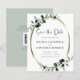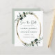 Orçamento Casamento Metálico Dourado Eucalyptus Salve a Data Convite... Nosso luxo botânico Salvar a Data convite apresenta uma estrutura oval metálica dourada embelezada com folhas poeirentas de eucalipto verde e calypto abarrotado com esmeraldas criando uma fronteira natural para o texto do anúncio dentro. A parte verde empoeirada do cartão contém as informações do seu site de casamento e um modelo gráfico de código QR que você pode substituir por seu próprio gráfico de código. Todo texto de exemplo (exceto o gráfico Salvar a Data) pode ser facilmente revisado com seus próprios detalhes no modelo de personalização.