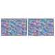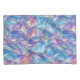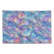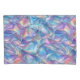 Um design geométrico metálico azul, laranja, dourado e roxo, iridescente, perfeito para um travesseiro.