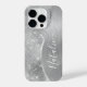 Personalize facilmente este metal escovado prateado e a glamourosa capa de telefone com padrão de brilho com seu próprio nome personalizado.