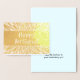 Este design de cartão de aniversário de folha de ouro tocável apresenta a mensagem "Feliz Aniversário" na frente, juntamente com uma mensagem personalizável no dentro. Pode ser dado a alguém que comemora um aniversário.