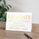 Em ouro ou prata, este cartão de folha dobrada de data é a data que você tem procurado. Adicione seus detalhes do casamento futuro!
