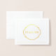Folha de ouro real Obrigado Nota O cartão é mostrado em branco com um nome de amostra e um impressão de borda e sotaque em folha de ouro real. Personalize esta placa e altere o texto do exemplo para o seu com este modelo ou comprar, conforme mostrado.